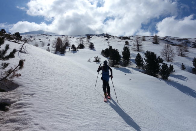 L’Aiguille de Scolette, ou Pierre Menue en italien, est le second plus haut sommet des Alpes Cottiennes. Peu connue du grand public, son accès difficile la rend sauvage. En été, son versant nord-ouest constitue la voie la plus facile. Il s’agit d’une ascension peu technique, où toute la difficile réside sur la fin. En effet, le point culminant est défendu par quatre tours rocheuses, devant être gravies. En hiver, la même voie offre de grandes pentes, intéressantes pour les sports de glisse. Les skieurs s’arrêtent très souvent vers 3400 mètres d’altitude, au pied des ultimes ressauts. C’est ici que débute le couloir Coudé, une ligne de 630 mètres de haut proposant une pente comprise entre 40 & 45 degrés. L’itinéraire se réalise généralement en boucle.