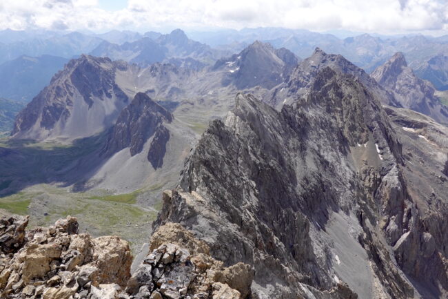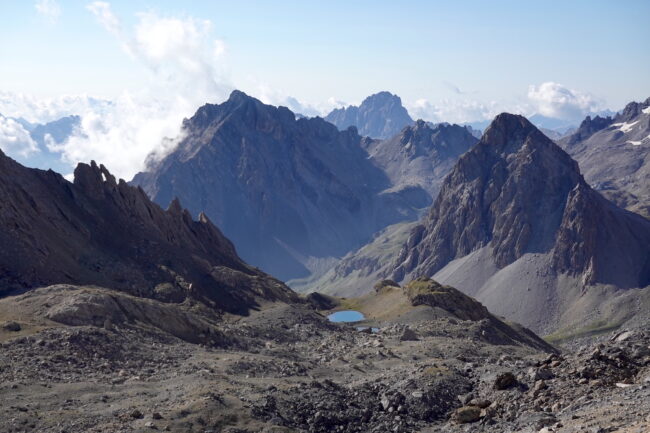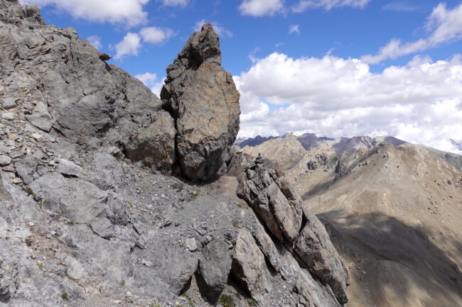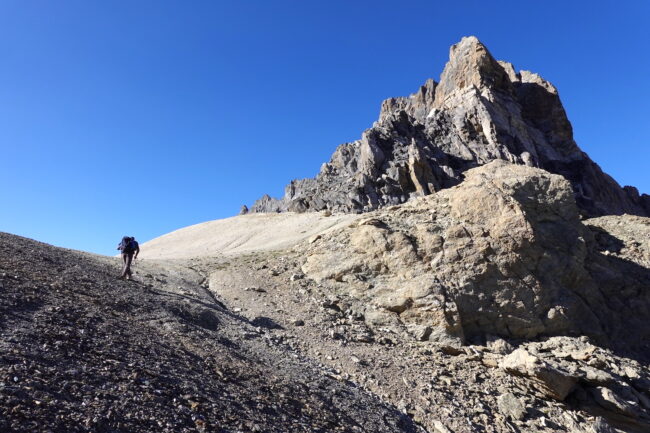 Le Brec de Chambeyron est le second plus haut sommet du massif éponyme, mais aussi celui des Alpes-de-Haute-Provence. Observée depuis la vallée de l’Ubaye, il s’agit d’une montagne omniprésente dans le paysage. En hiver, elle propose des couloirs skiables, très raides & exposés. En été, le Brec offre des itinéraires d’alpinisme peu fréquentés. Parmi eux, la voie normale se dessine au sein de son versant nord-est. Cette dernière combine vires & ressauts à gravir, avec deux longueurs d’escalade sur sa partie haute. Le départ se fait depuis le hameau de Fouillouse, sur les hauteurs de Saint-Paul-sur-Ubaye. Il est confortable de faire une halte au refuge de Chambeyron, construit sur le chemin d’approche & perché à 2626 mètres d’altitude.