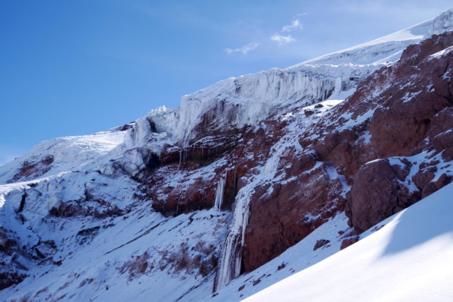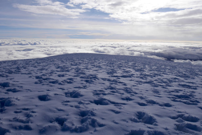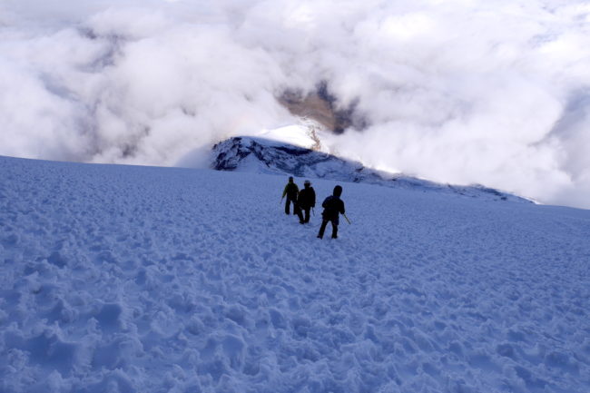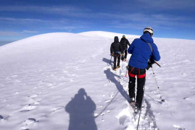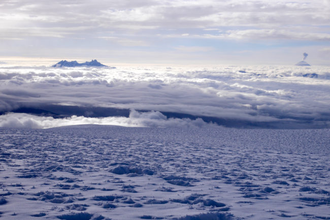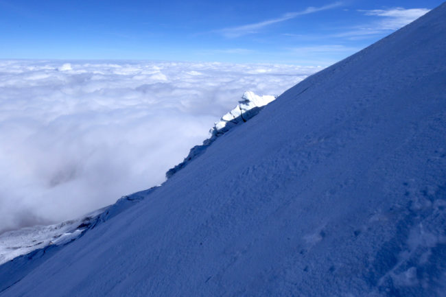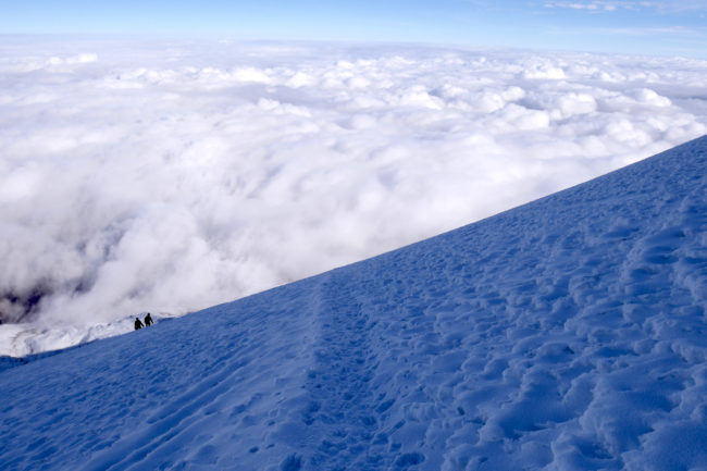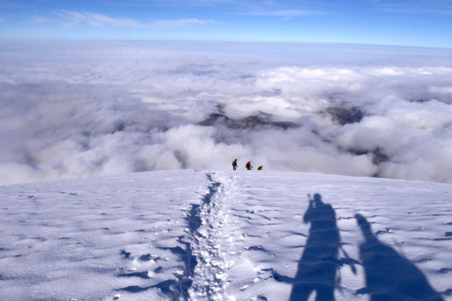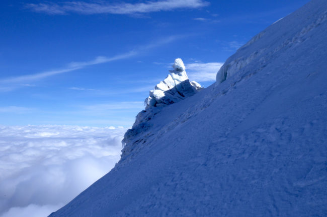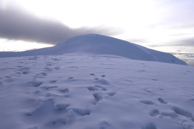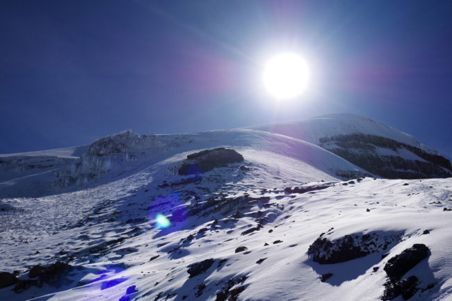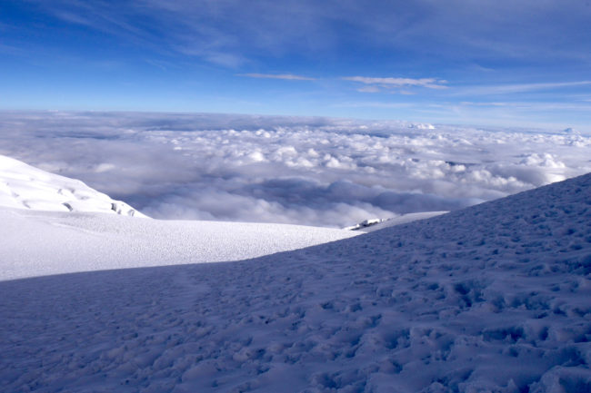 Le Chimborazo, avec ses 6310 mètres d’altitude, représente le point culminant de l’Équateur. Il est composé de deux sommets principaux: la pointe Whymper étant la plus haute & l’antécime Veintimilla, située légèrement plus à l’ouest. Cet immense volcan éteint, large de 20 kilomètres à sa base, est recouvert de glaciers. La montagne pourrait être considérée comme le toit du monde, si nous ne prenions plus le niveau de la mer comme référence de mesure. Effectivement, la Terre a une forme ellipsoïdale, offrant un rayon plus important à la ligne imaginaire de l’équateur qu’au niveau des pôles. Ainsi, le sommet du Chimborazo est l’endroit sur la planète le plus éloigné de son centre. Il est, pour la même raison, le point sur Terre le plus proche du Soleil. Deux refuges sont construits sur le versant sud-ouest du géant: le Carrel & le Whymper, le premier cité étant accessible en 4×4. La voie normale de la cime n’exige pas de grandes exigences techniques, par bonnes conditions. Cependant, lorsque l’itinéraire est sec, la présente de glace vive peut considérablement augmenter la difficulté de l’ascension. De plus, les risques objectifs ne sont pas négligeables. En effet, le tracé emprunte un passage clé appelé El Castillo, étant un immense cirque grandement exposé aux chutes de pierres.