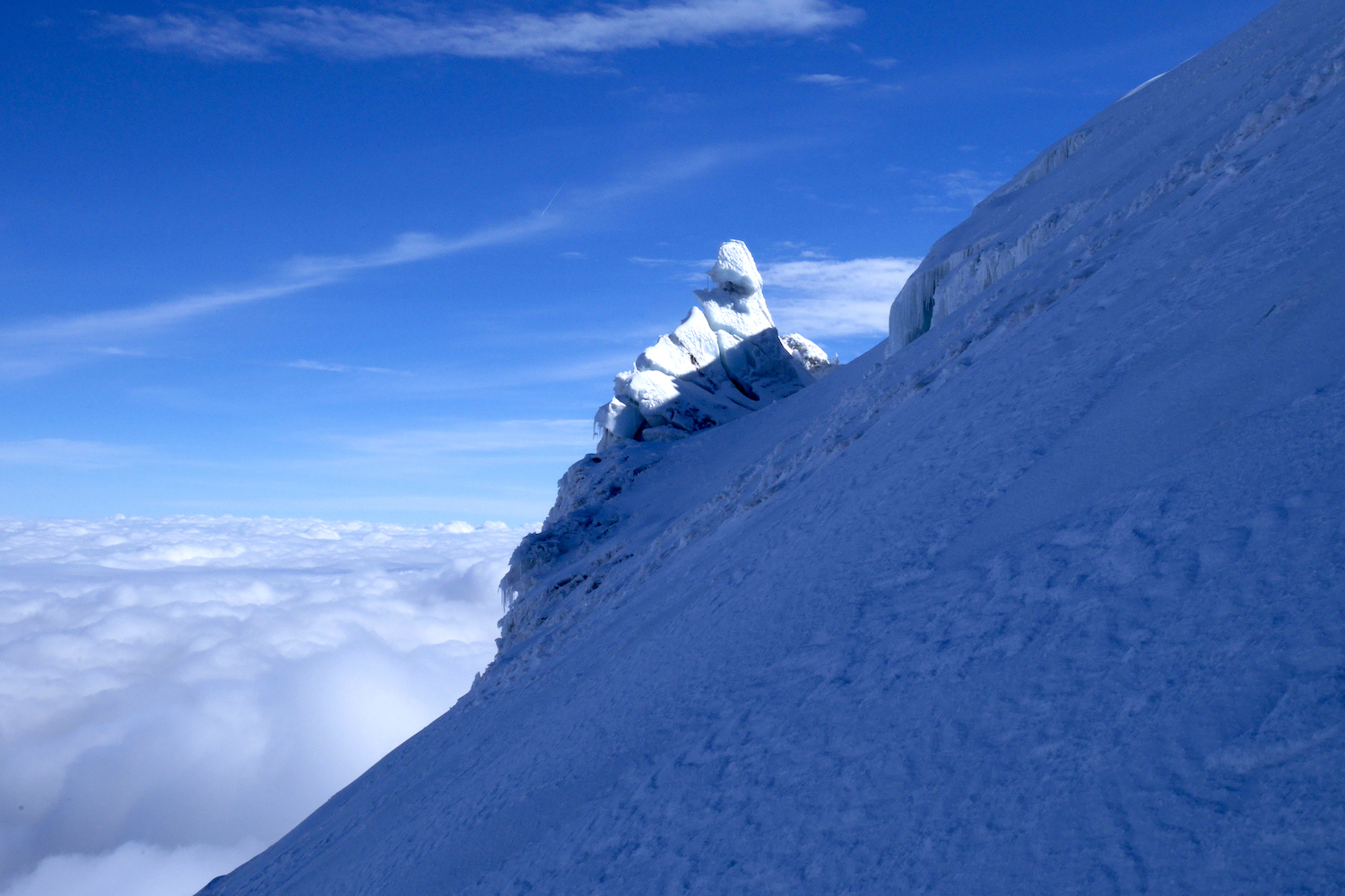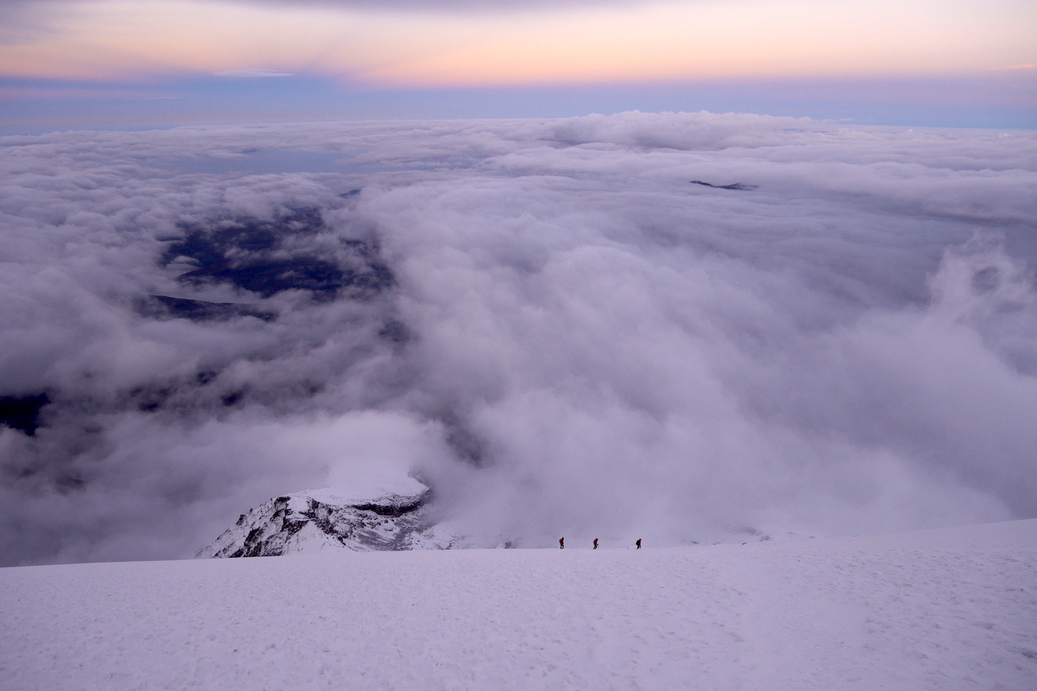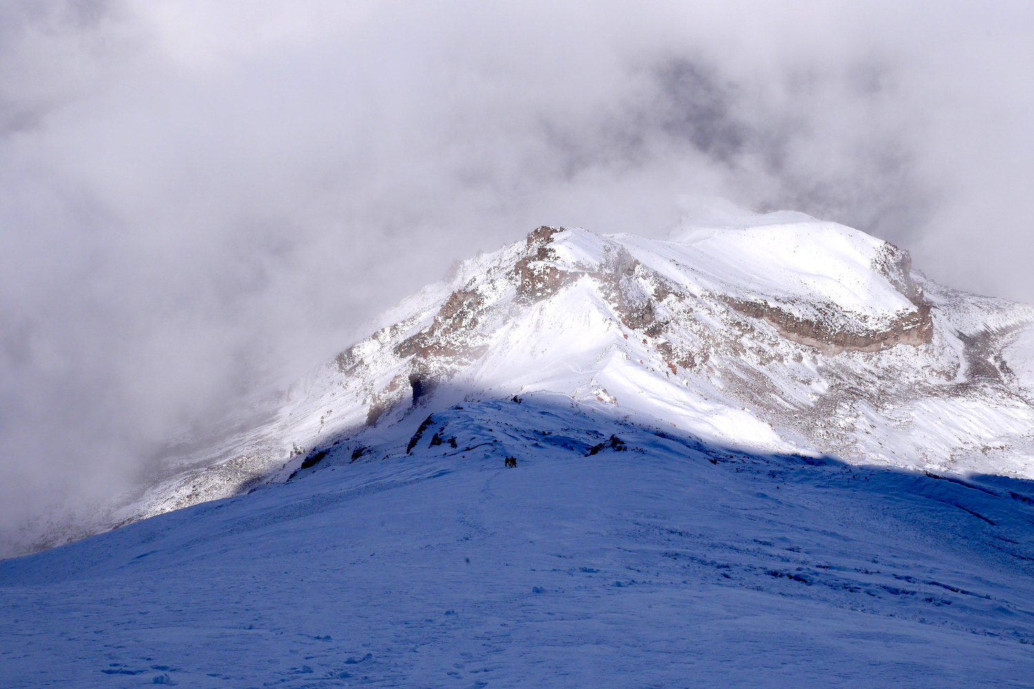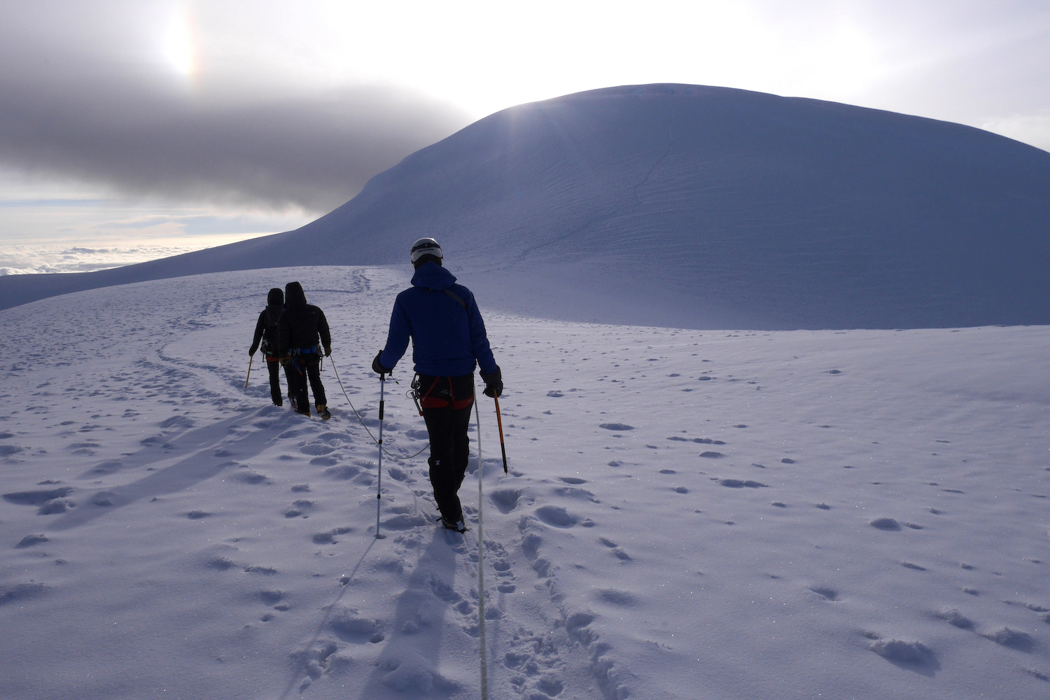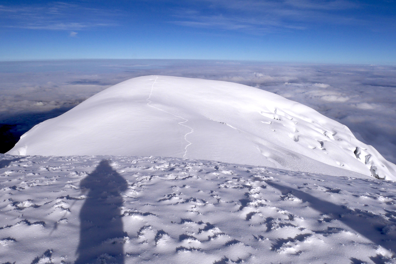 Le Chimborazo, avec ses 6310 mètres d’altitude, représente le point culminant de l’Équateur. Il est composé de deux sommets principaux: la pointe Whymper étant la plus haute & l’antécime Veintimilla, située légèrement plus à l’ouest. Cet immense volcan éteint, large de 20 kilomètres à sa base, est recouvert de glaciers. La montagne pourrait être considérée comme le toit du monde, si nous ne prenions plus le niveau de la mer comme référence de mesure. Effectivement, la Terre a une forme ellipsoïdale, offrant un rayon plus important à la ligne imaginaire de l’équateur qu’au niveau des pôles. Ainsi, le sommet du Chimborazo est l’endroit sur la planète le plus éloigné de son centre. Il est, pour la même raison, le point sur Terre le plus proche du Soleil. Deux refuges sont construits sur le versant sud-ouest du géant: le Carrel & le Whymper, le premier cité étant accessible en 4×4. La voie normale de la cime n’exige pas de grandes exigences techniques, par bonnes conditions. Cependant, lorsque l’itinéraire est sec, la présente de glace vive peut considérablement augmenter la difficulté de l’ascension. De plus, les risques objectifs ne sont pas négligeables. En effet, le tracé emprunte un passage clé appelé El Castillo, étant un immense cirque grandement exposé aux chutes de pierres.