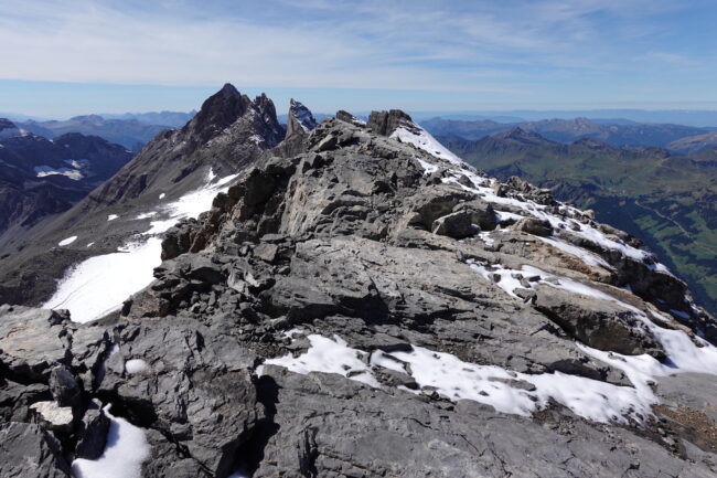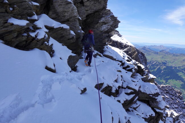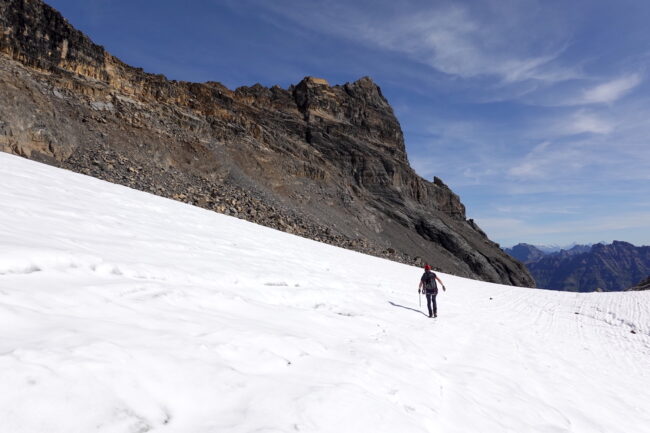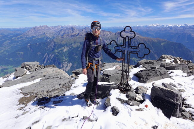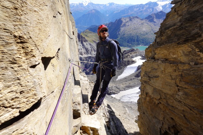 La Cime de l’Est est un sommet du Haut-Giffre, dominant la vallée du Rhône & le val d’Illiez. Il appartient à un chainon montagneux appelé Dents du Midi, culminant à la Haute Cime. Aucune voie n’est aisée pour parvenir à la Cime de l’Est. La plus classique débute par la longue montée au refuge des Dents du Midi, depuis le vallon de Van. S’en suit la courte traversée du glacier de Plan Névé, donnant accès à l’itinéraire en tant que tel. Celui-ci consiste à remonter le couloir Rambert jusqu’à la brèche éponyme, constitué de roches instables. De là, une traversée exposée sur des vires s’impose en versant nord, suivie d’un ressaut d’escalade menant à la croix sommitale. Le retour se fait par le même itinéraire, ponctué de quelques rappels.