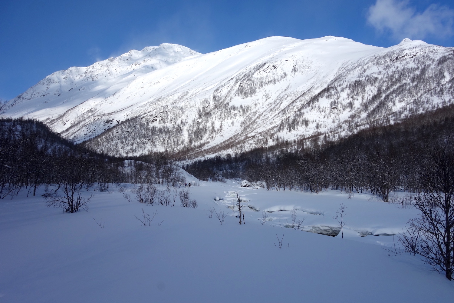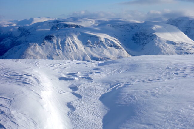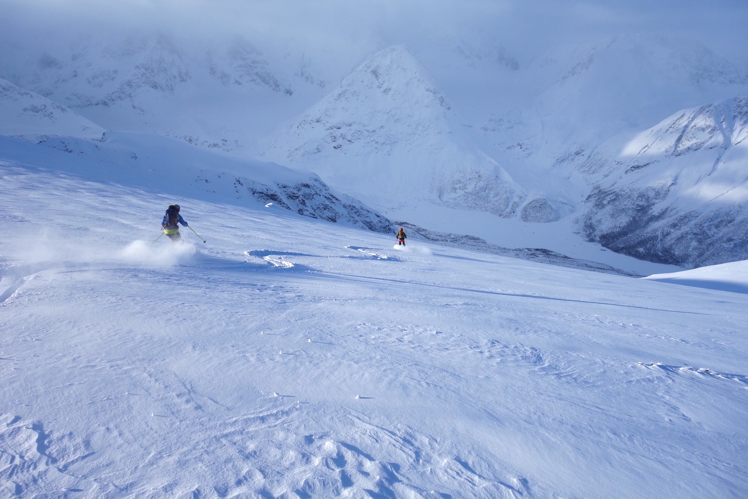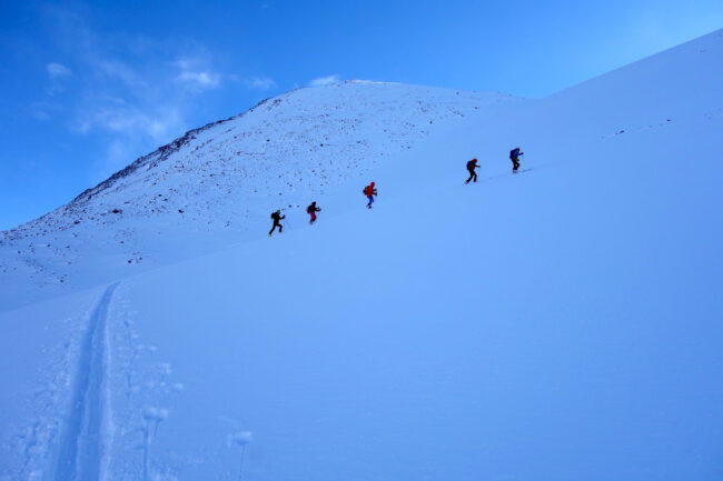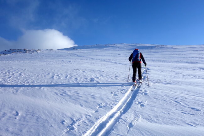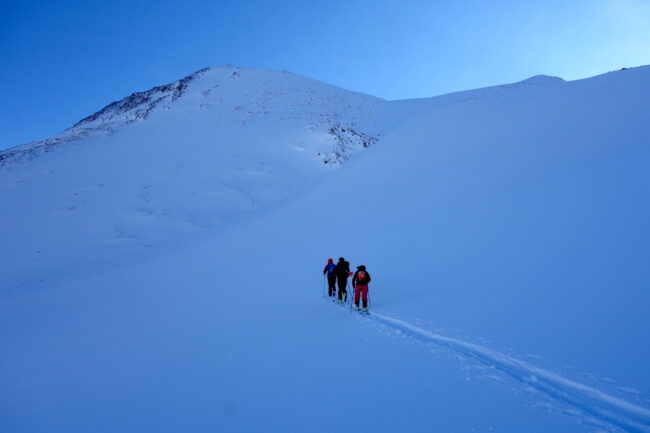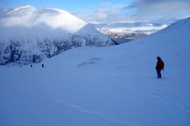 Le Daltinden représente l’un des plus hauts sommets des Alpes de Lyngen, avec une altitude dépassant les 1500 mètres. Sa face nord accueille l’itinéraire le plus fréquenté. L’approche de ce dernier consiste à s’élever doucement dans la vallée de Lyngsdalselva, sur quelques kilomètres. Celle-ci permet ensuite de rejoindre la voie en tant que telle, menant les skieurs naturellement sur le vaste plateau sommital. Tout au long de l’ascension, les paysages environnants sont très esthétiques. Parmi eux, les glaciers du Jiekkevarri, point culminant des Alpes de Lyngen, sont mis en évidence. Le parcours, proposant des pentes idéales pour la glisse, est devenu un classique du coin. Le dénivelé & la distance à réaliser ne sont pas négligeables.
