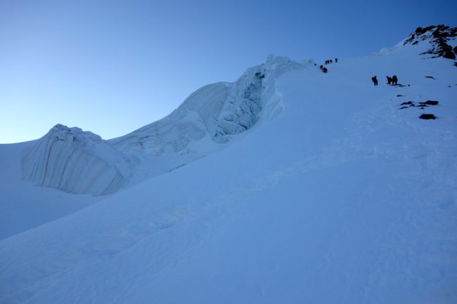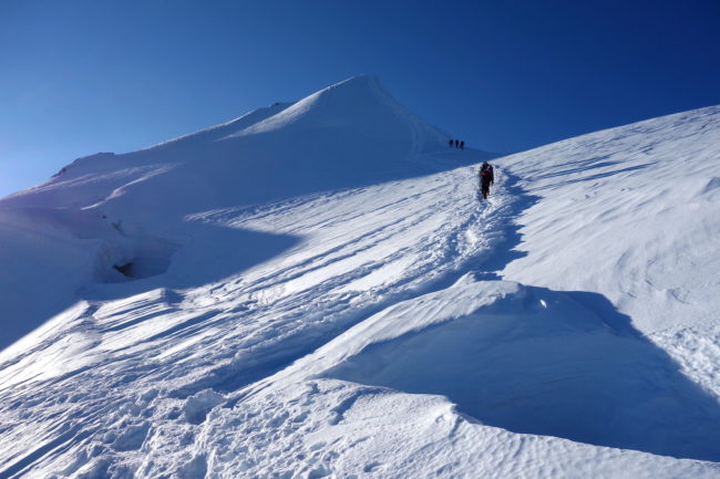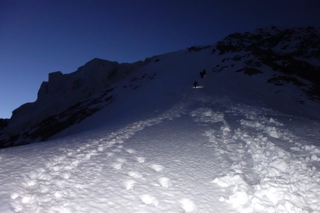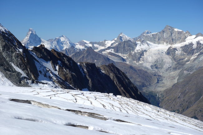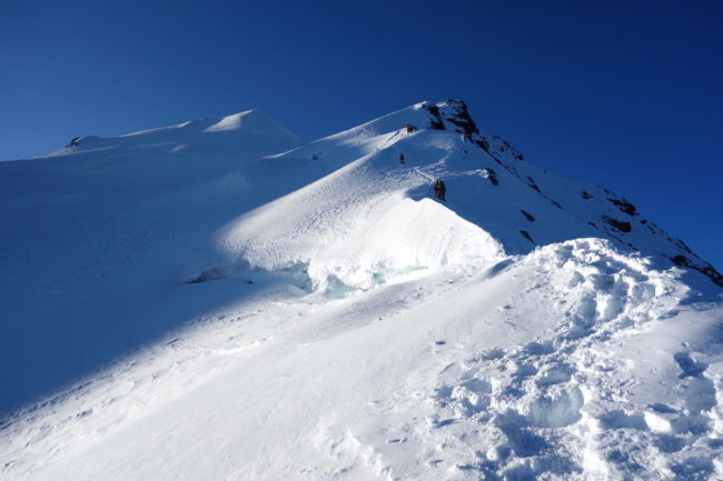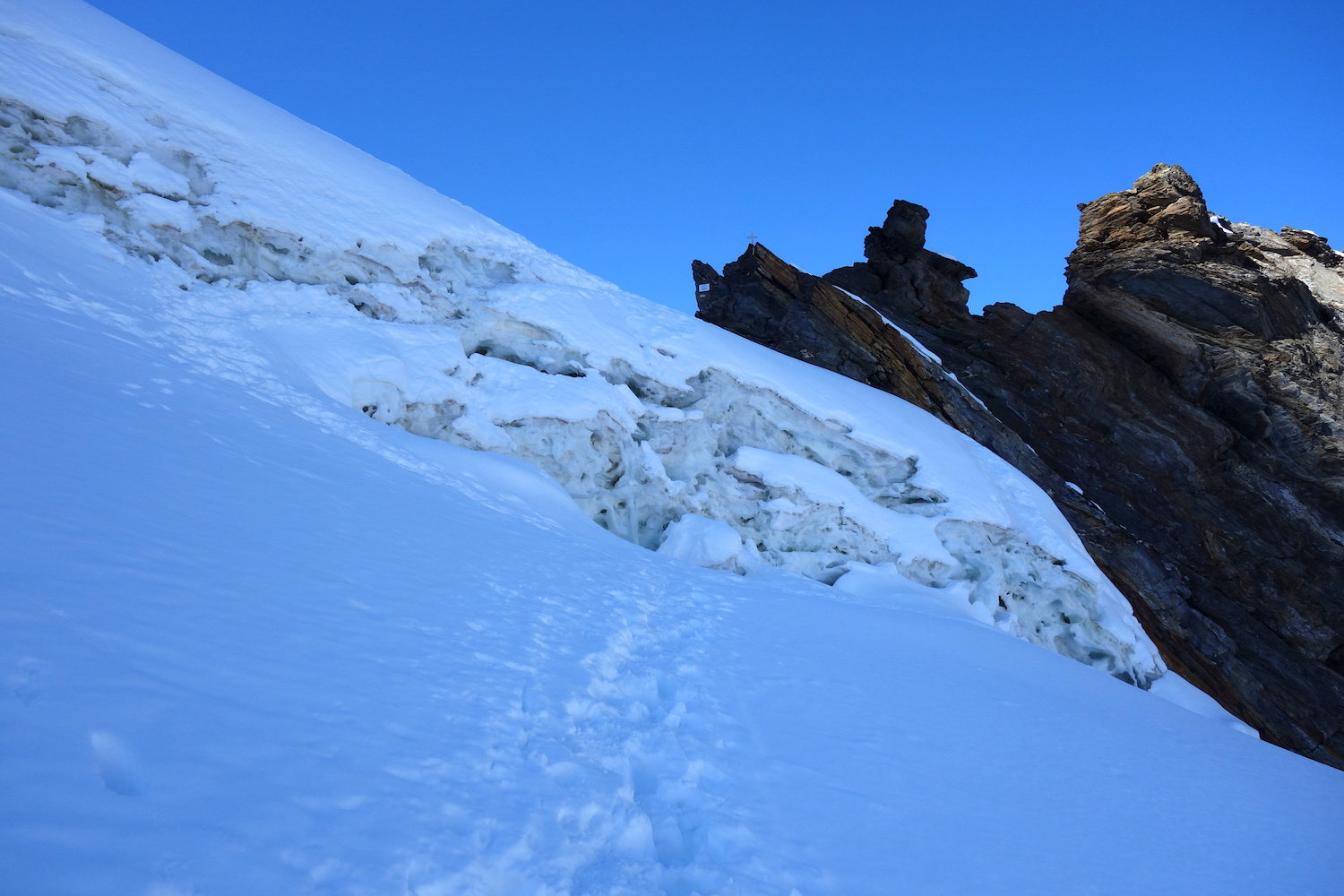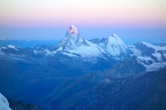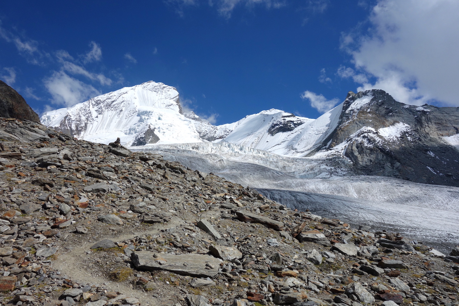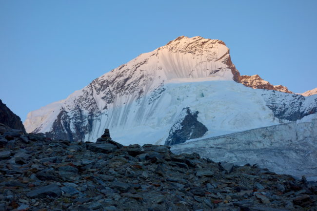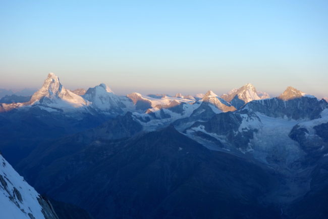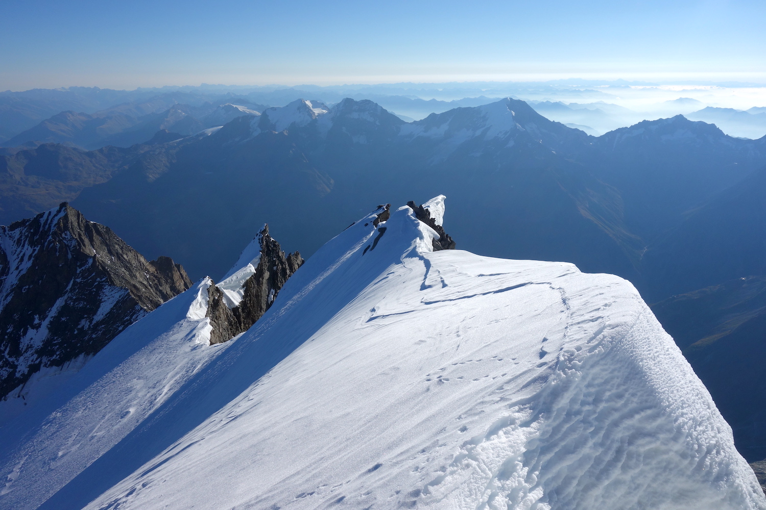 Le Dom des Mischabels, ou simplement Dom, est le plus haut sommet entièrement situé en Suisse. Perché entre le Mattertal & le Saastal, il constitue également le point culminant de la chaine des Mischabels. Son versant nord glaciaire se démarque radicalement de sa face sud, rocheuse & abrupte. La voie normale du géant, réalisable à pied comme à ski, représente l’un des dénivelés absolus les plus importants des Alpes. En effet, celle-ci se compose de 3150 mètres à la verticale & se dessine sur les flancs nord-ouest. La Festigrat en est une alternative intéressante, située à proximité. Il s’agit d’une arête mixte peu technique, permettant de toucher la croix sommitale de manière esthétique. Les deux itinéraires évoqués se séparent au niveau du Festijoch, passage obligatoire quelle que soit l’option choisie. Il est possible de couper l’ascension en deux jours, en dormant à la Domhütte, construite à 2940 mètres d’altitude.