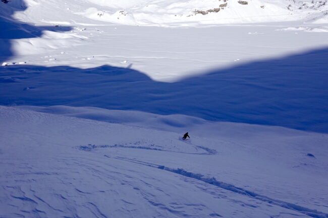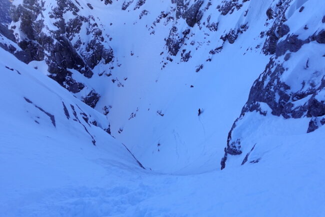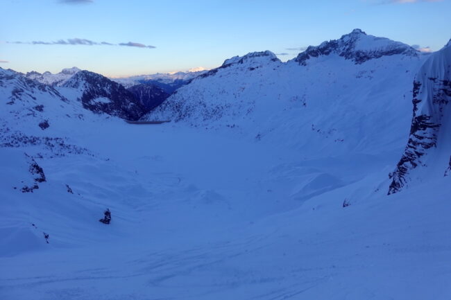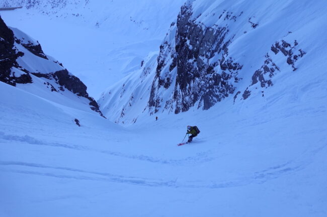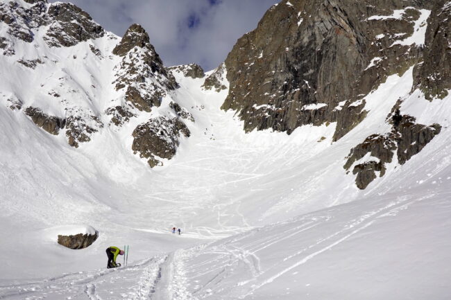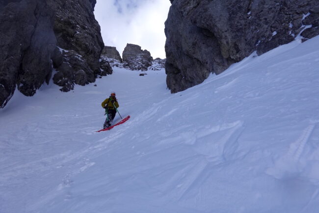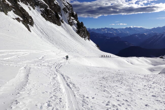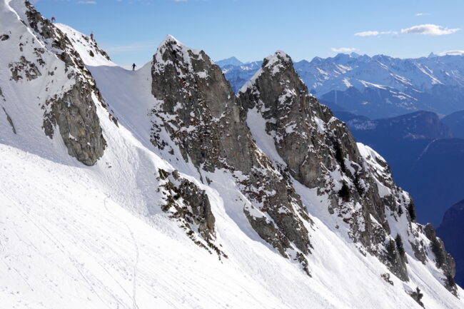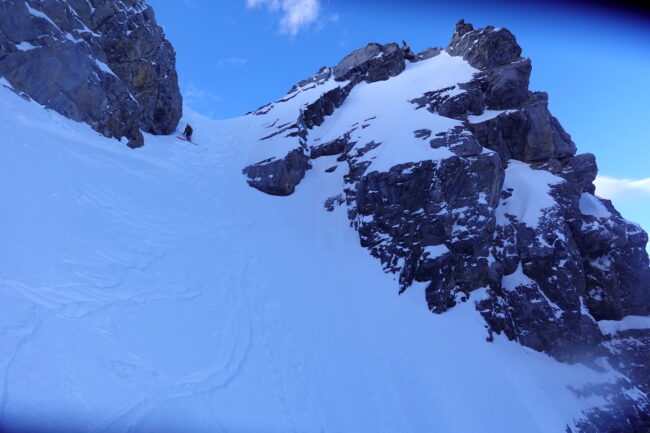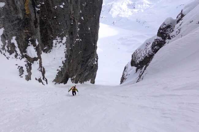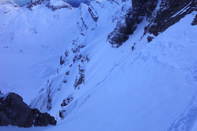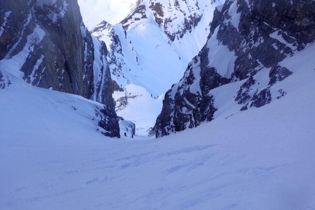 Itinéraires : couloir de Creux Château & couloir Hug      Configuration : traversée      Départ : télésiège du Vélard, les Marécottes