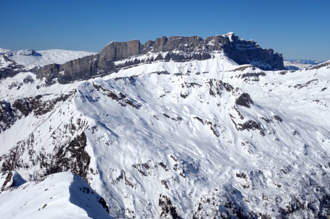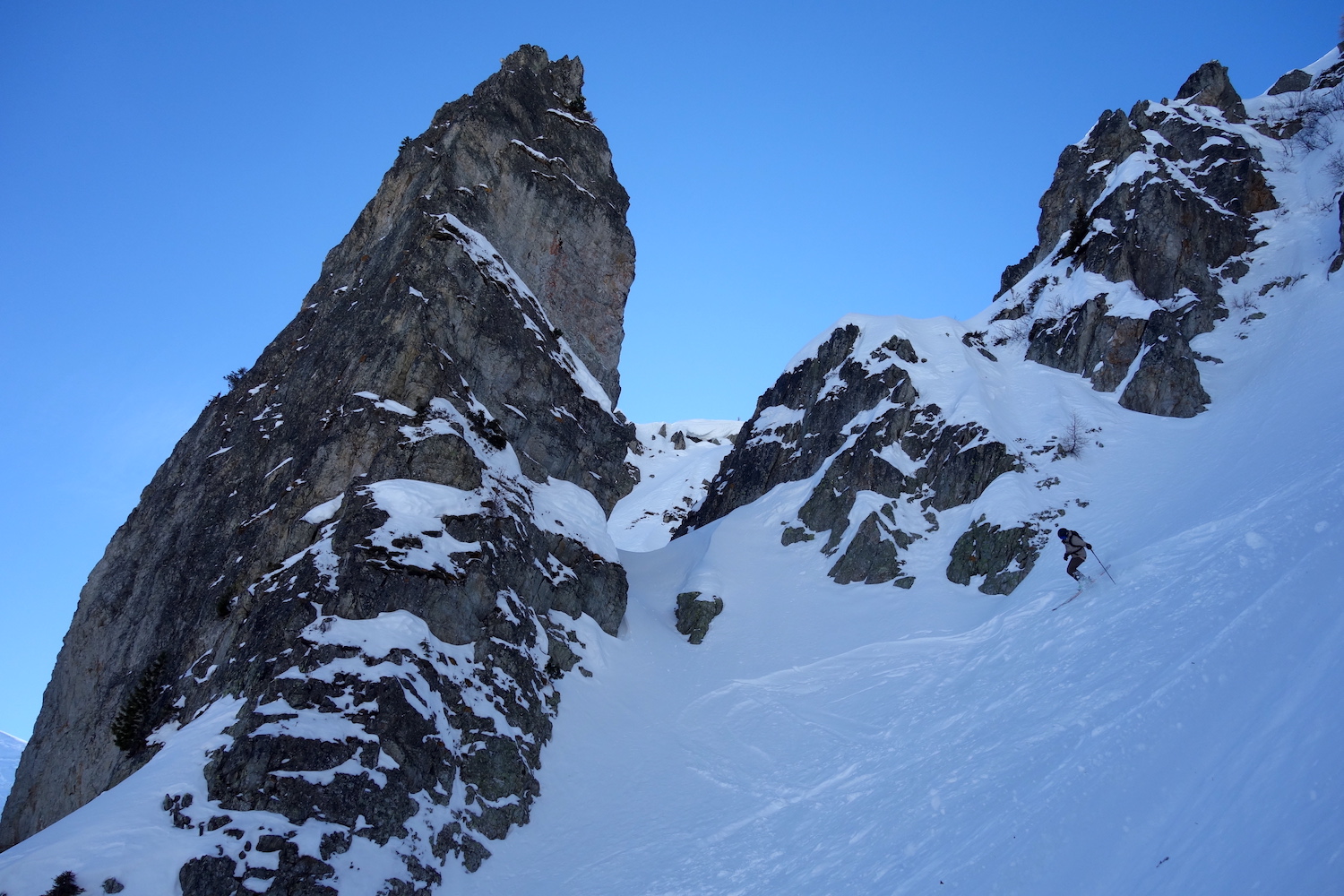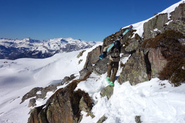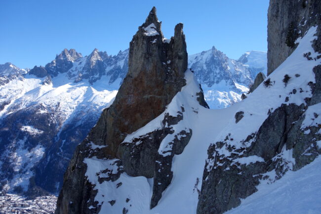 Le Brévent est une cime des Aiguilles Rouges, située au sud de ce massif. C’est une montagne très fréquentée, en raison des remontées mécaniques emmenant skieurs & randonneurs directement au sommet. Elle donne d’ailleurs son nom au domaine skiable éponyme, dont elle en représente le point culminant. Le Brévent accueille un bon nombre d’itinéraires estivaux comme hivernaux. En été, son kilomètre vertical est réputé alors qu’en hiver, de belles lignes de pente raide apparaissent. Parmi elles, la plus mythique est le couloir de l’ENSA. Il est accessible depuis le haut du téléphérique, en suivant d’abord l’arête ouest. L’entrée est souvent défendue par un verrou rocheux. Généralement, ce dernier nécessite de réaliser un rappel.