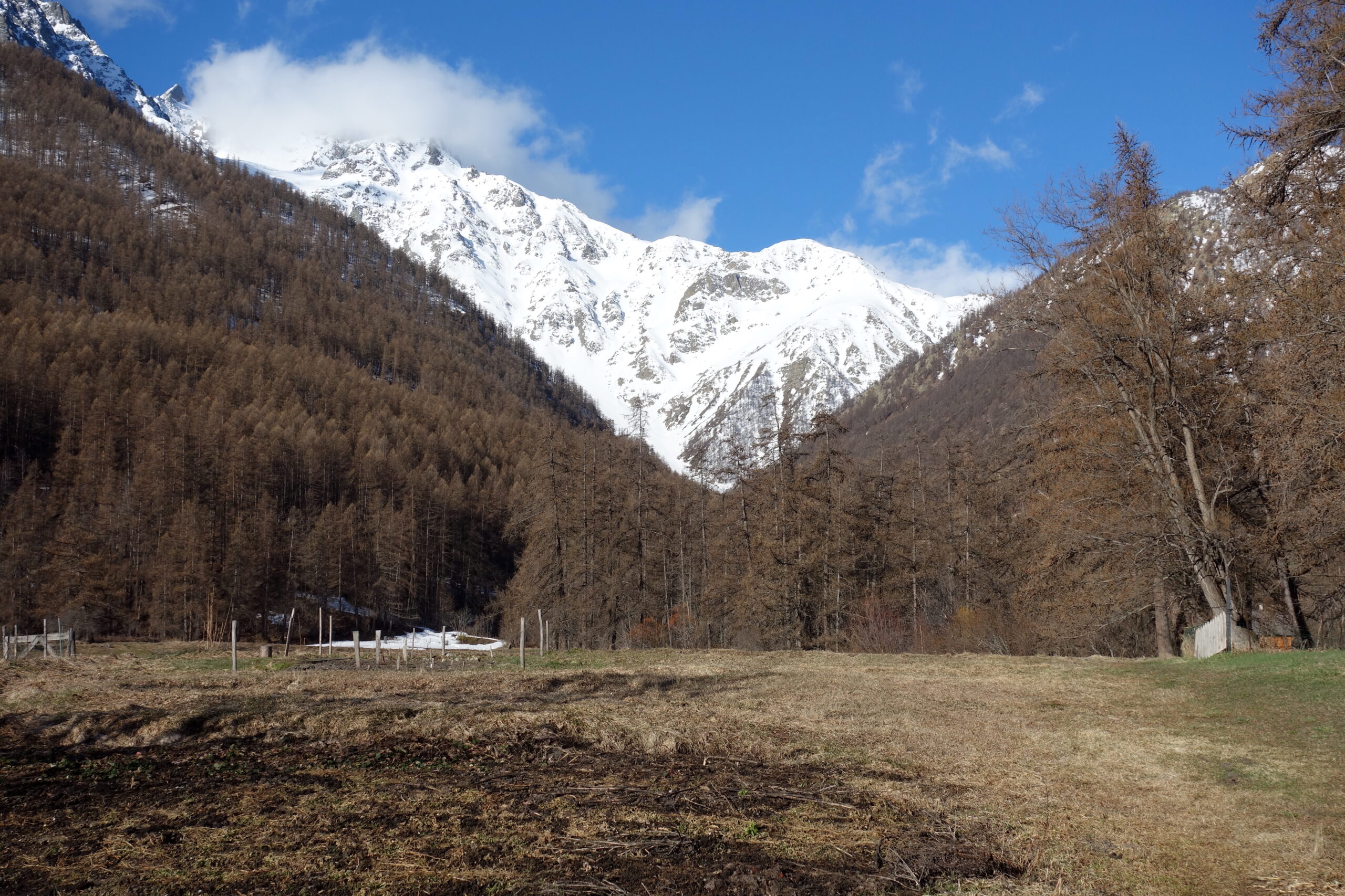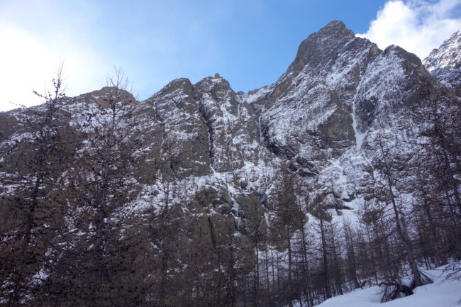 Le Pic des Prés les Fonts est une montagne des Écrins. La cime est réputée pour accueillir l’une des lignes les plus convoitées du massif : le couloir Davin. D’une pente comprise entre 40 & 50 degrés, l’itinéraire est haut d’environ 800 mètres & se divise en deux branches sur sa partie supérieure. Dans le sens de la montée, celle de gauche s’avère être la plus raide & la plus grande. Elle n’aboutit pas au point culminant mais plutôt à son col éponyme, dominant un petit plateau glaciaire. L’itinéraire est accessible depuis le hameau du Casset, après avoir remonté le vallon du Petit Tabuc. Ce dernier, boisé au départ, laisse place aux moraires de l’ancien glacier du Casset. À ce stade, le Davin se situe au fond à gauche, en devenant rapidement visible.
