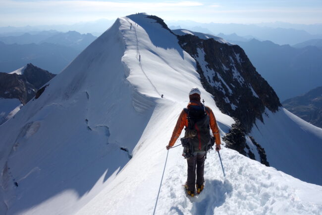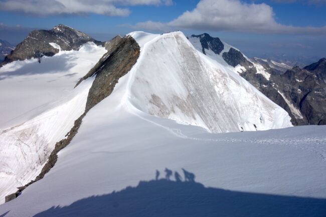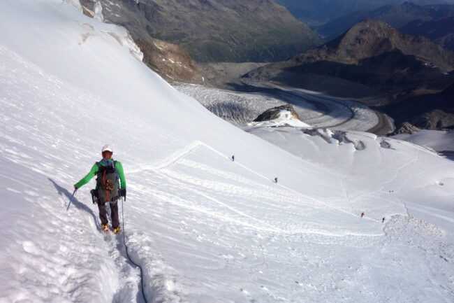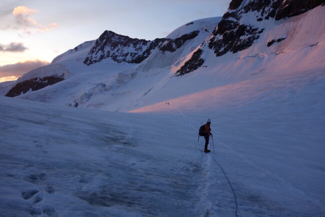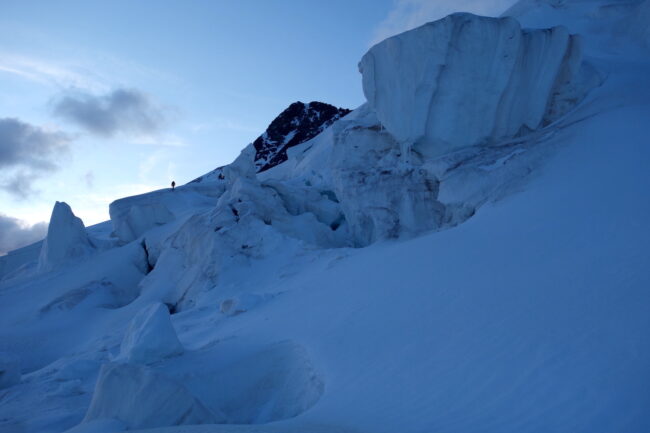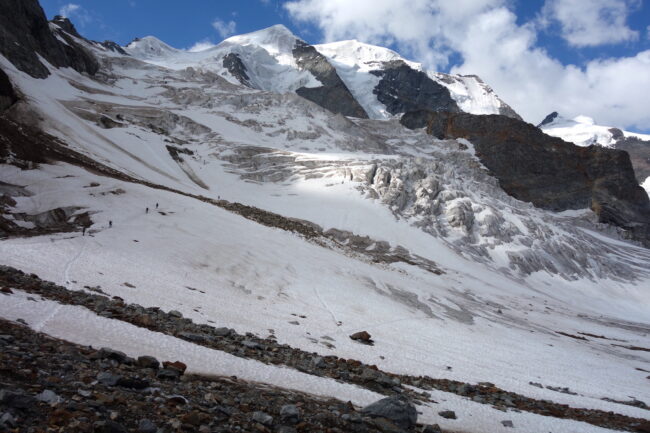 Les Piz Palü constituent un chainon montagneux du massif de la Bernina; composé du pic oriental, du pic principal & du Piz Spinas. Ils sont régulièrement fréquentés par les alpinistes revenant de la Biancograt, du Piz Bernina. L’enchainement consiste à dormir à la cabane Tschierva, puis d’emprunter l’itinéraire cité précédemment. La deuxième nuit se passe logiquement au refuge Marco e Rosa, avant de traverser les Piz Palü d’ouest en est. Cela permet de couper cette longue traversée en trois jours, en profitant de l’esthétisme des lieux par un magnifique parcours d’arêtes rocheuses & neigeuses. Afin de rendre la descente plus digeste, il est possible d’emprunter le téléphérique de la Diavolezza, construit à presque 3000 mètres d’altitude.