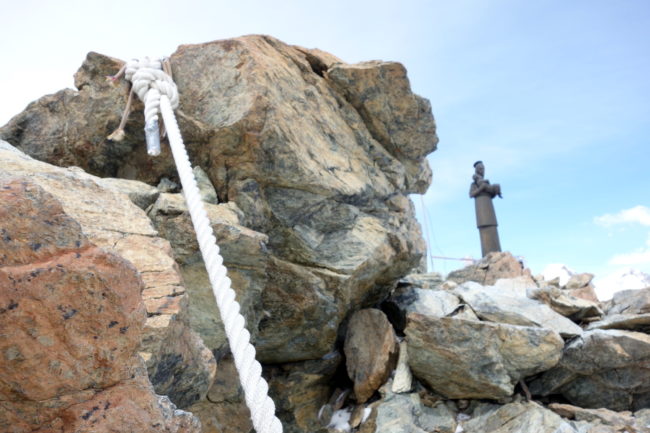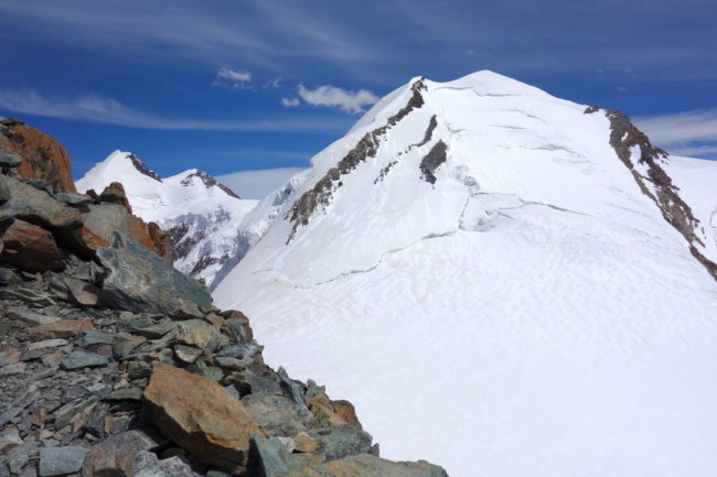 Le Pollux est l’un des plus petits 4000 du Mont Rose. Il est bordé par la chaine des Breithorn au nord-ouest & par le Castor au sud-est. Sa face occidentale, entièrement glaciaire, offre un itinéraire de ski de pente raide. Haute de 200 mètres, elle est inclinée à environ 45 degrés. Son arête sud-ouest elle, constitue la voie la plus fréquentée. Les dalles rocheuses verticales, toutes proches du point culminant, accueillent de nombreuses cordes fixes. Elles donnent ensuite accès au plateau sommital neigeux, décoré d’une statue de vierge. Celui-ci ne comporte aucune difficulté. Un abri non gardé, le bivouac Rossi & Volante, est situé tout proche du Pollux. Construit à 3750 mètres, à flanc de falaises, il permet donc de réaliser divers enchainements.