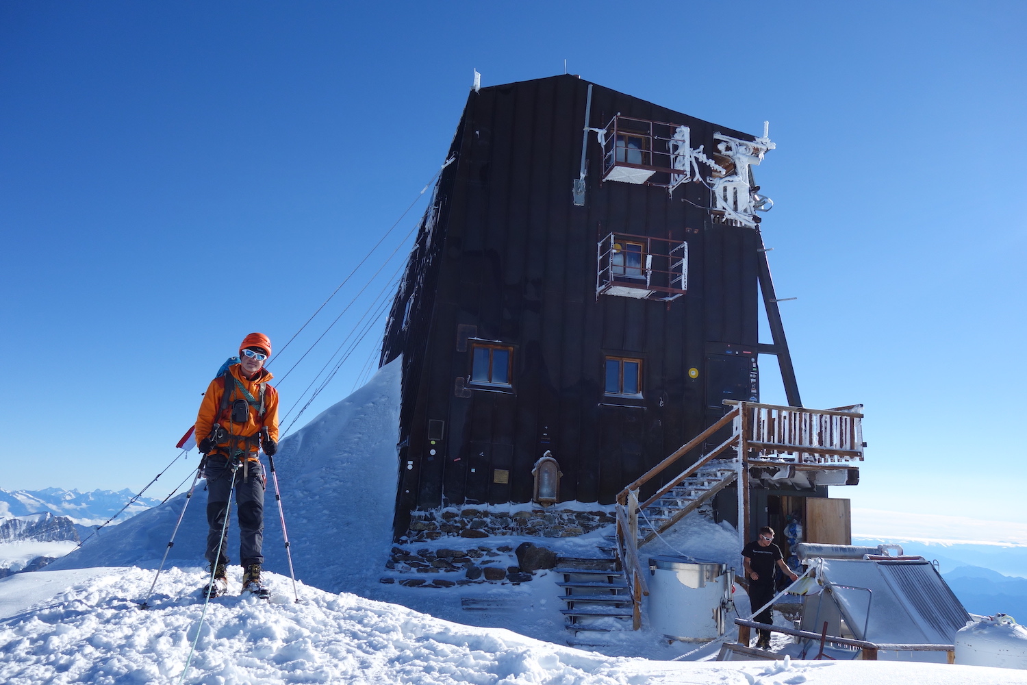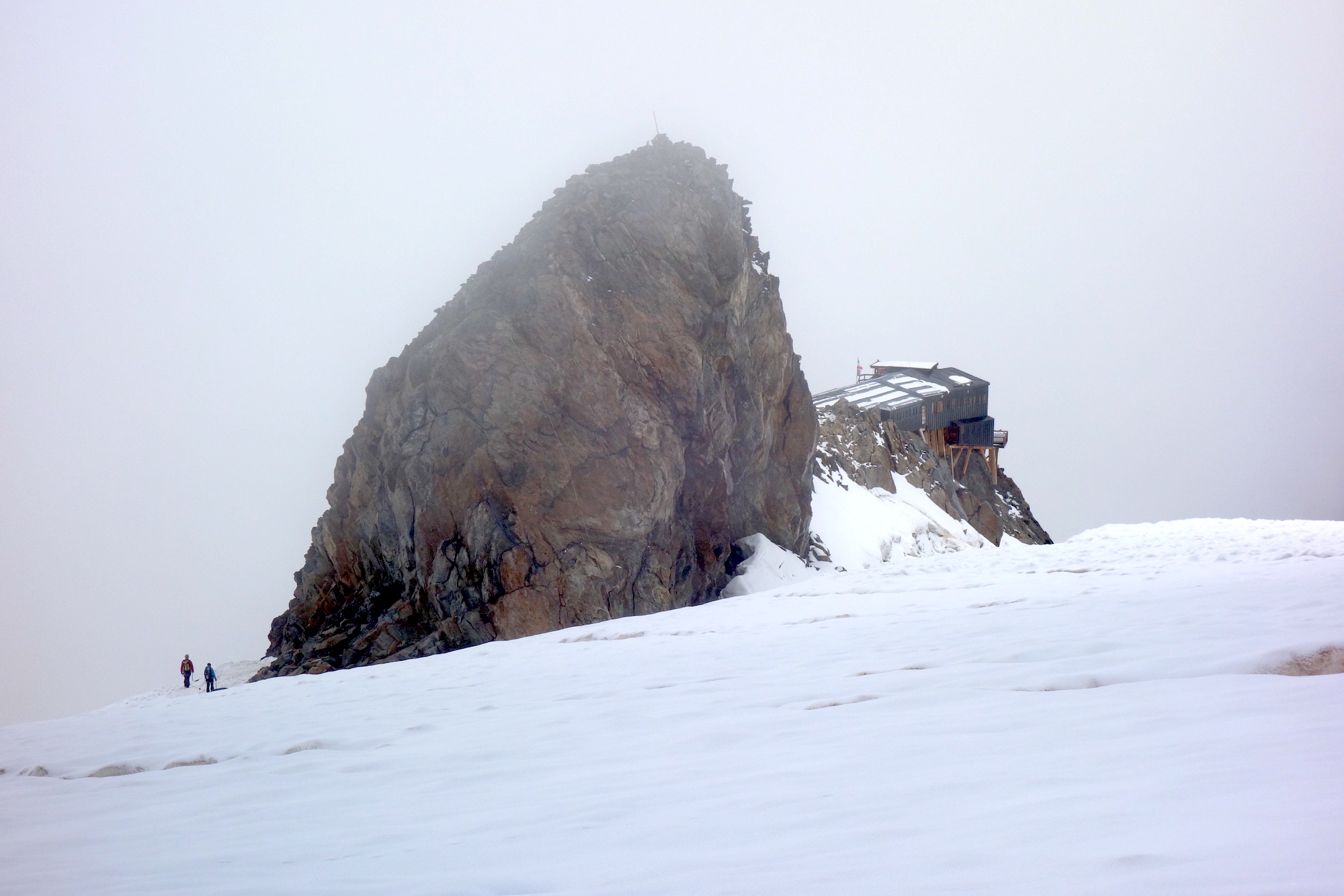 La Signalkuppe, connue sous le nom de Punta Gnifetti en italien, est la quatrième plus haute cime du Mont Rose & le cinquième plus haut relief d’Italie. Le col Gnifetti la sépare de sa voisine: la Zumsteinspitze évoquée précédemment. Le sommet de la montagne en question a la particularité d’accueillir le plus haut refuge d’Europe: la cabane Reine-Margherite. Le gite, inauguré en 1893 & remplacé par le bâtiment actuel en 1979, représente également l’observatoire fixe le plus élevé du monde. Son arête orientale, la Cresta Signal, est un itinéraire très technique. L’ascension de sa voie classique par contre ne présente aucune difficulté notable. C’est pour ces raisons que la Signalkuppe est devenue le lieu le plus populaire & le plus prisé du Mont Rose.