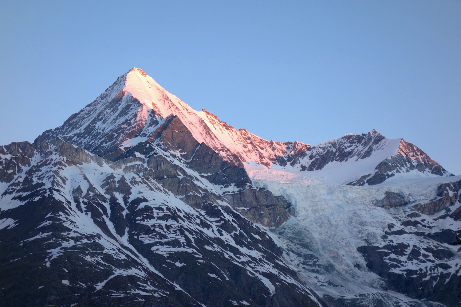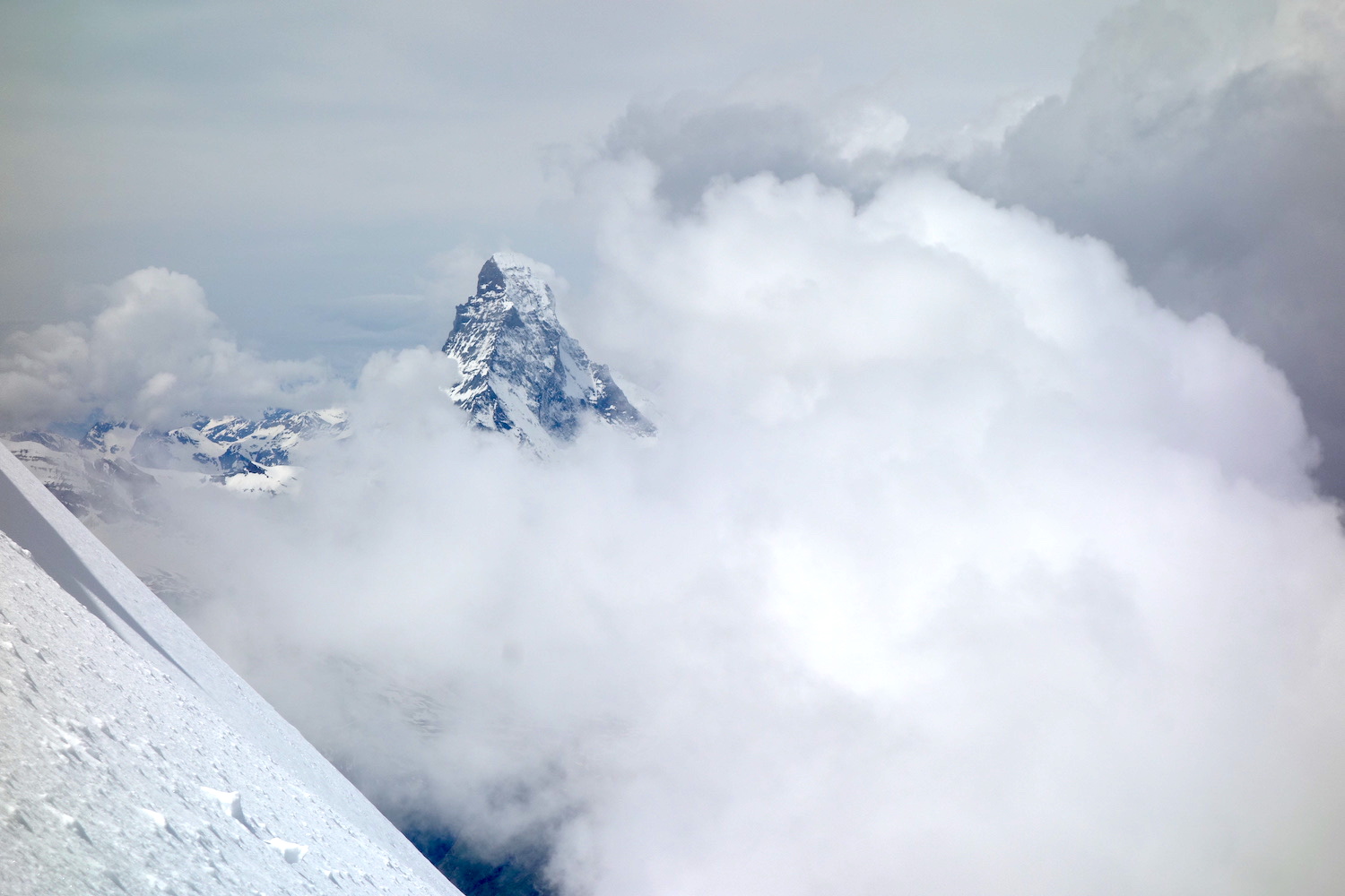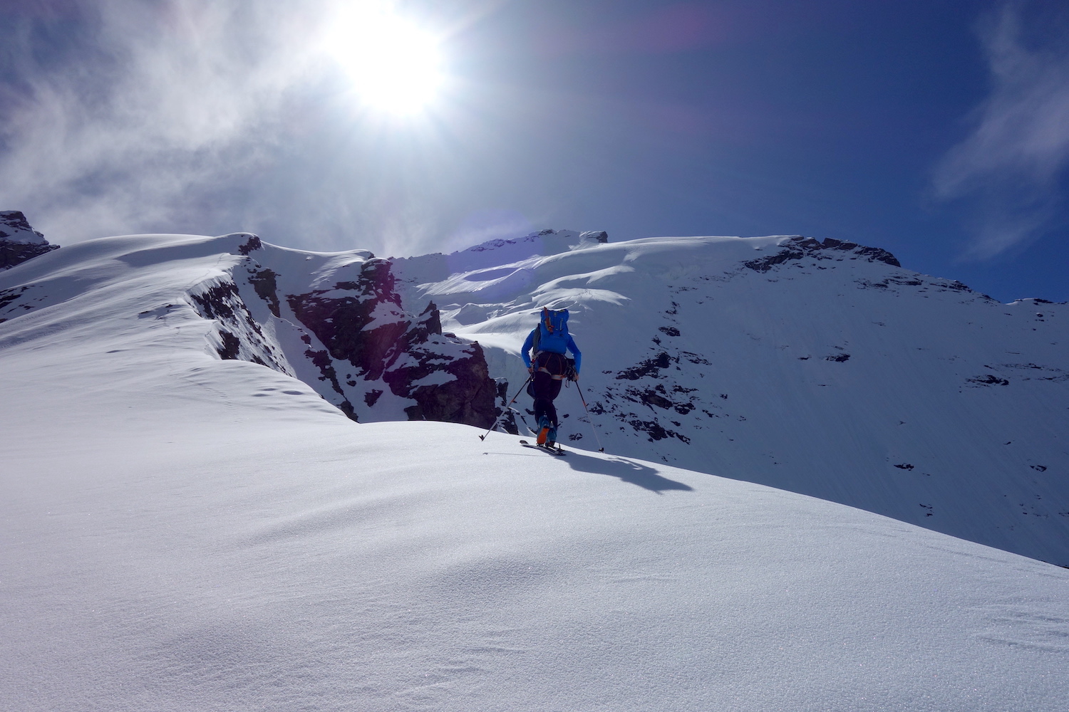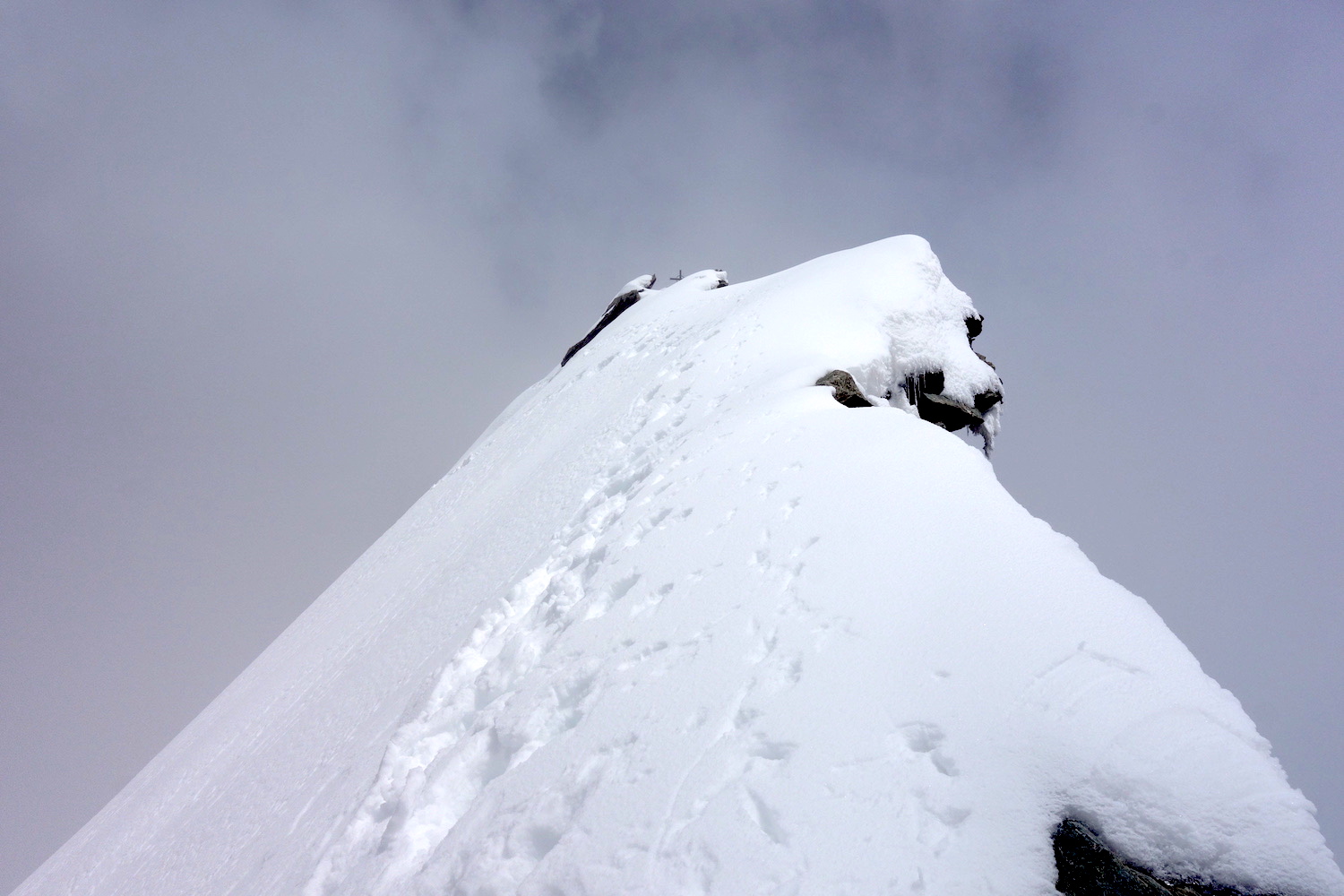Le Täschhorn, avec ses 4491 mètres d’altitude, constitue le dixième plus haut sommet des Alpes. Appartenant à l’immense massif des Alpes Pennines, il trône entre le Mattertal à l’ouest & le Saastal à l’est. La montagne est dominée de près par le célèbre Dom des Mischabels, plus haute cime entièrement située en territoire suisse. Tous les itinéraires menant au Täschhorn sont longs & possèdent des difficultés techniques notables. Ainsi, il est rendu sauvage & exigent. En périodes estivales, l’arête méridionale est l’une des voies les plus prisées. Un abri non gardé est construit à son pied: le Mischabeljochbiwak, perché à 3855 mètres. La face nord-ouest est considérée comme la voie normale du géant. Elle démarre du hameau de Randa, puis passe par la Kinhütte. S’en suit le Kingletscher, zone glaciaire tourmentée puis le versant mentionné. Lorsque les conditions de neige sont bonnes, celle-ci devient une ligne de ski de pente raide.